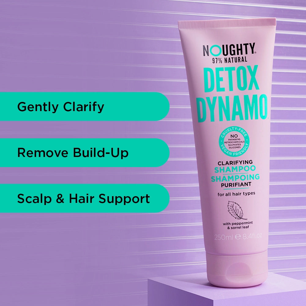 Ta bort uppbyggnad med Detox Dynamo Klargörande Schampo. Rensa försiktigt håret, ta bort rester från stadsföroreningar, hårt vatten, klor och stylingprodukter för att stödja optimal hårbotten och hårkondition.