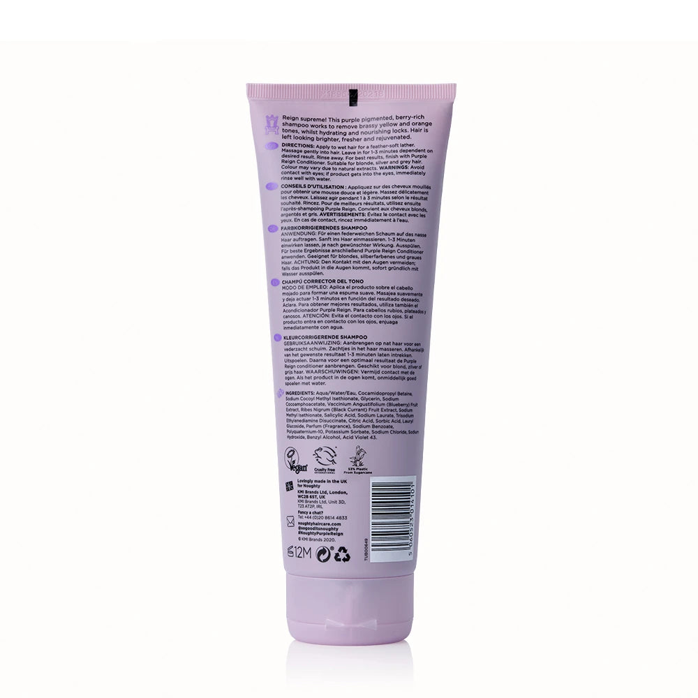 Besiegen Sie Messingtöne mit dem farbkorrigierenden Purple Reign Shampoo. Neutralisieren Sie unerwünschte Töne für helleres Blond, lebendigeres Silber und frischeres Grau. Natürlich, sulfatfrei, silikonfrei, parabenfrei. Vegan und frei von Tierversuchen